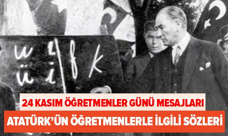 Atatürk'ün öğretmenler ile ilgili sözleri, günün en çok aranılanları arasında yer alıyor. Öğretmenler Günü, her yıl 24 Kasım tarihinde kutlanmaktadır. Bu özel günde öğretmenlere hediyeler alınır ya da güzel bir söz ve şiirle, Öğretmenler Günü kutlanır. Bizde bu özel günde paylaşılabilecek en içten 24 Kasım Öğretmenler Günü mesajları ile Atatürk'ün öğretmenler için söylediği sözleri sayfamızda bir araya getirdik. İşte en güzel Öğretmenler Günü mesajları ve Atatürk'ün öğretmenlerle ilgili sözleri...