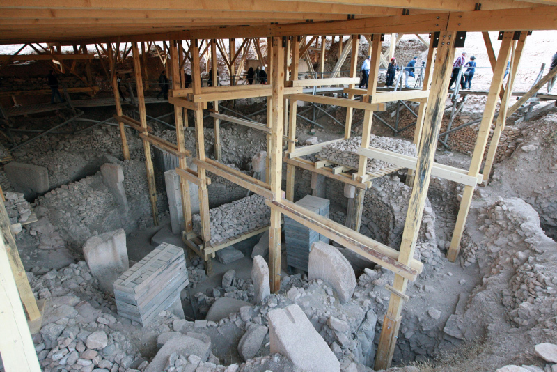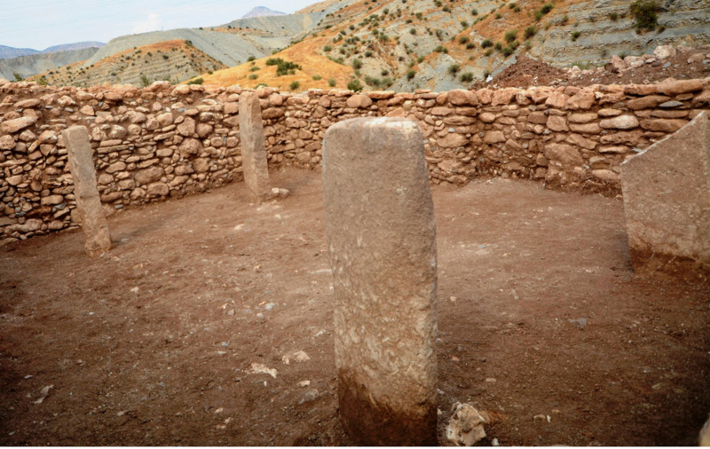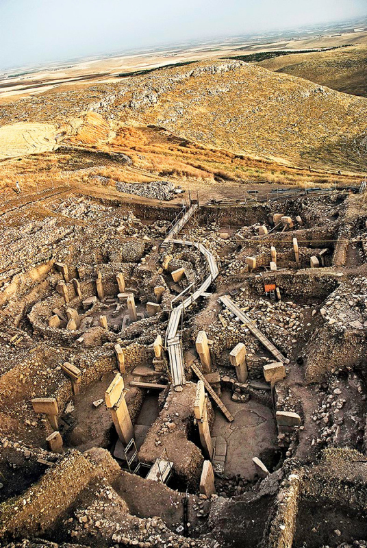 Göbeklitepe, aşağı yukarı 12 bin yıl öncesine ait bir kalıntılar topluluğu. Elips ya da spiral biçiminde yerleştirilmiş alçak duvarların ortasında T şeklinde dikilitaşlardan oluşuyor. Bu taşların bulunduğu duvarlar boyunca yine T şeklinde, daha küçük taşlarla çevrili yapılar görülüyor. O dönemde yapıyı inşa eden insanlar, bu alanı 1500 yıl kullandıktan sonra üzerini toprakla örterek kapatıyor. Alanın keşfedilmesinden bugüne kadar yapılan incelemelerde bunun nedeni henüz bulanamamışken, orada yaşayan insanlara ne olduğu da aydınlatılmak için beklenen sorular arasında yer alıyor.
