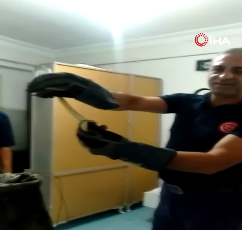 Paniğe kapılan vatandaşlar itfaiyeye haber verdi. Olay yerine gelen Avcılar itfaiyesi ekipleri eldiven ve yardımcı aparat kullanarak yılanı olduğu yerden çıkardı.