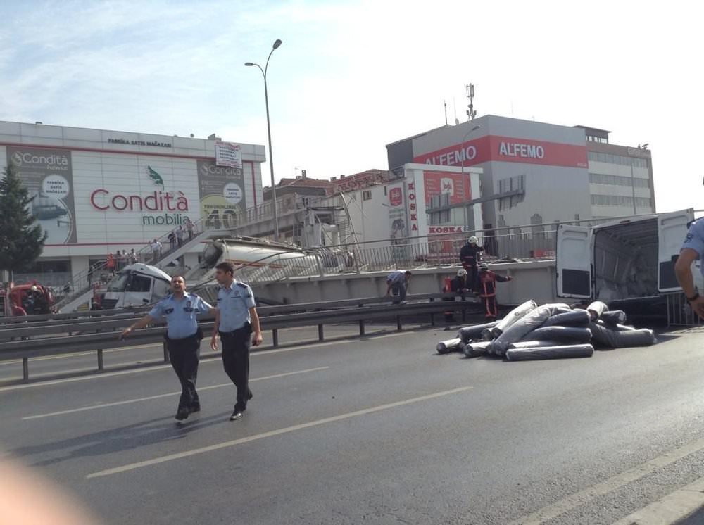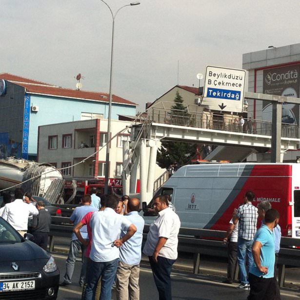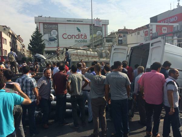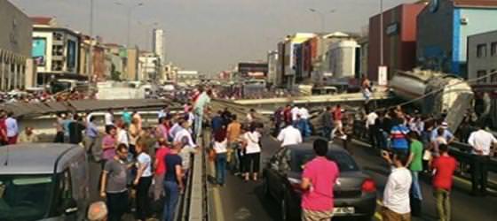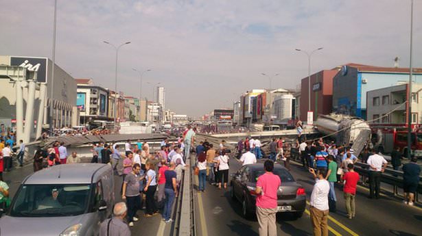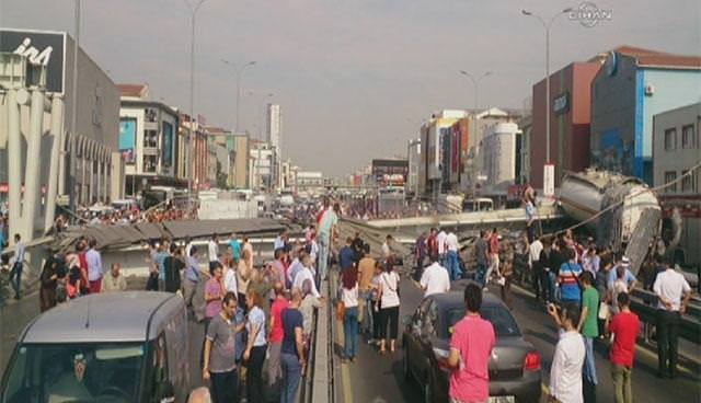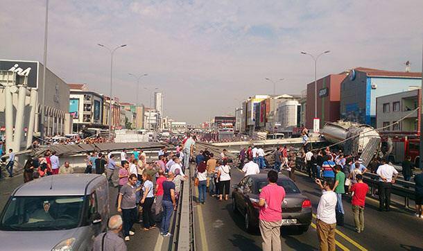 Avcılar'da D-100 kara yolundaki üst geçit çöktü.