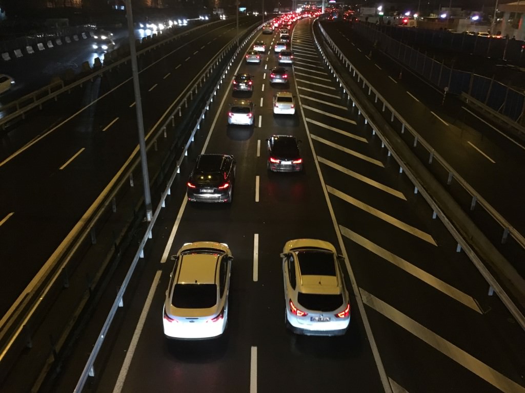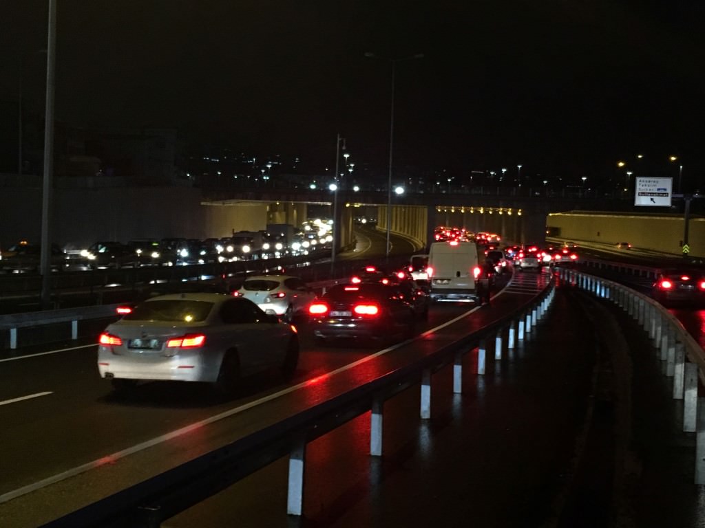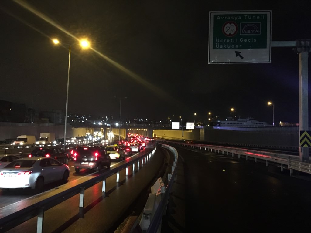 Açılışının ardından ilgi gören Avrasya Tüneli'nde akşam saatlerinden itibaren trafik yoğunluğu oluşmaya başlandı.
