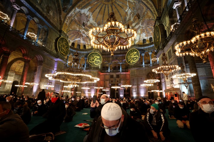 Diyanet İşleri Başkanı Ali Erbaş, Regaip Kandili dolayısıyla Ayasofya-i Kebir Cami-i Şerifi'nde düzenlenen programa katılarak dua etti.