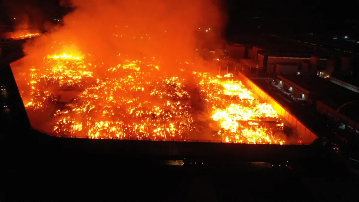Atık kağıtların depolandığı açık alanda başlayan yangın bugün çıkan hortumla ikinci depolama alanına sıçradı. Gündüzleri karadan ve havadan devam eden söndürme çalışmaları gece kara araçları ile sürdürülüyor.