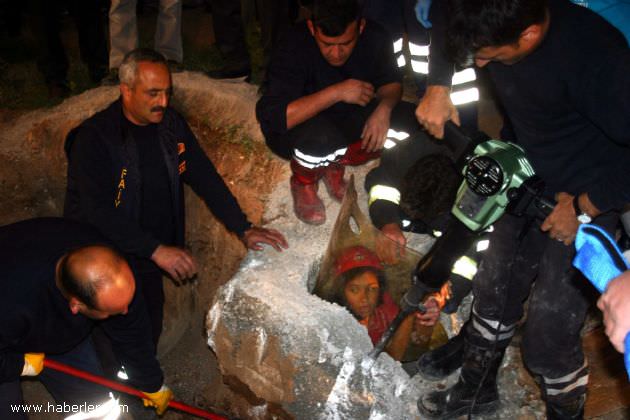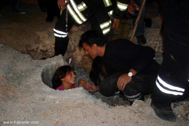 İtfaiye ve Ulusal Medikal Kurtarma Ekibi (UMKE) ekipleri tarafından sıkıştığı çukurdan çıkarılmaya çalışan kız çocuğu, "Baba yapamayacaklar" diye feryat etti.