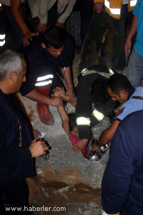 Yaklaşık iki saat süren operasyonun ardından kız çocuğu, sıkıştığı çukurdan çıkarılarak hastaneye kaldırıldı.