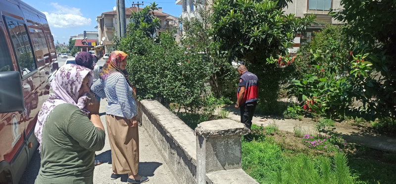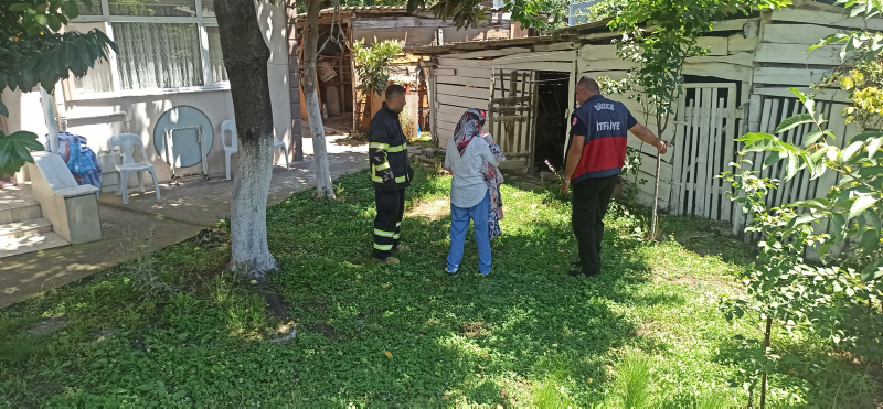 Yılandan korkan mahalle sakini kadınlar ise itfaiye erleri bahçede yılan ararken, duvarın arkasından itfaiyecileri yönlendirmeye çalıştı.