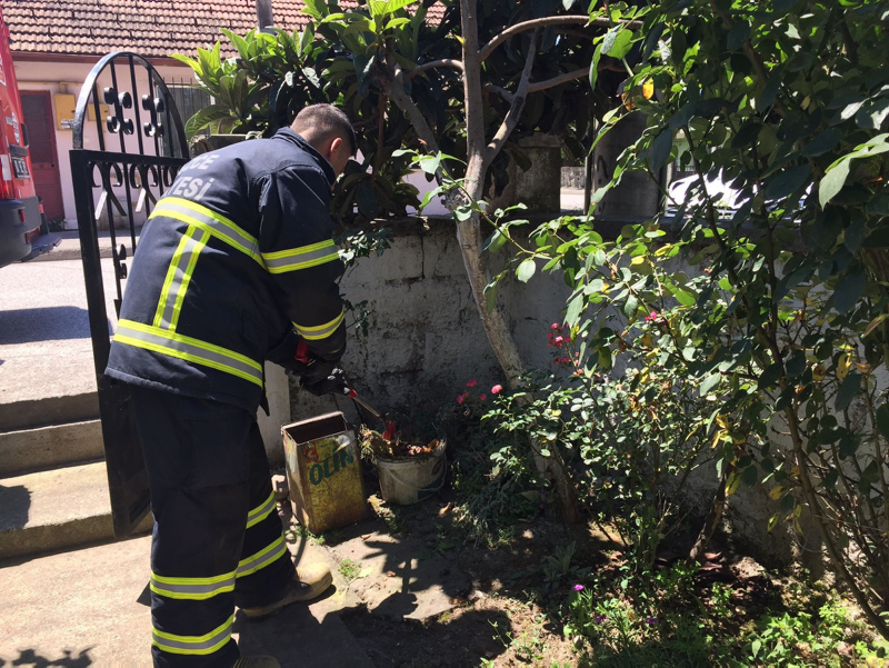 Düzce'de kadınların bahçede yılan ihbarı itfaiye ekiplerini harekete geçirdi. Bahçede köşe bucak yılan araması yapıldı. Mahalle sakinleri ise duvarın arkasından izledi.