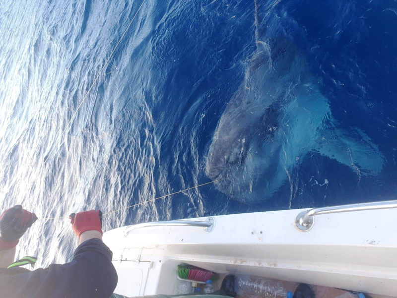 Son dakika haberi... Muğla'nın Datça ilçesinde balık avlamak için denize açılan balıkçıların oltasına yüzlerce kilo ağırlığında dev balık takıldı. Bakın balıkçılar o balığı ne yaptılar?