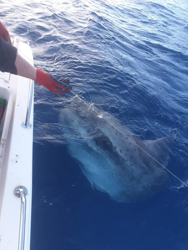 Datçlı balıkçı Umut Kantarlı yaptığı açıklamada, "Kılıç balığı avlamak için Datça Limanı'ndan ayrılarak İnce Burun mevkiine geldik. Burada oltalarımızı denize attık. Bir müddet sonra oltamıza bir balığın takıldığını hissettik, oltamızı yaklaşık 350 metreye attık sonra çekmeye başladık. Balık deniz yüzeyine çıkınca daha önce hiç rastlamadığımız bir balıkla karşılaştık ve bunun Ay balığı olduğunu anladık. Ağırlığı yaklaşık 400 kilo vardı. Bu balığın neslinin tükenme tehlikesiyle karşı karşıya olduğunu duymuştuk, bu yüzden balığı teknemize çıkarmadan serbest bıraktık" dedi.