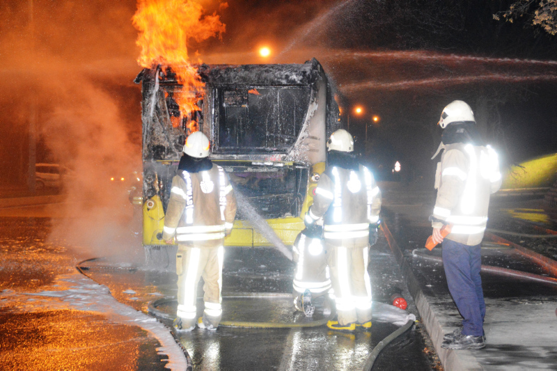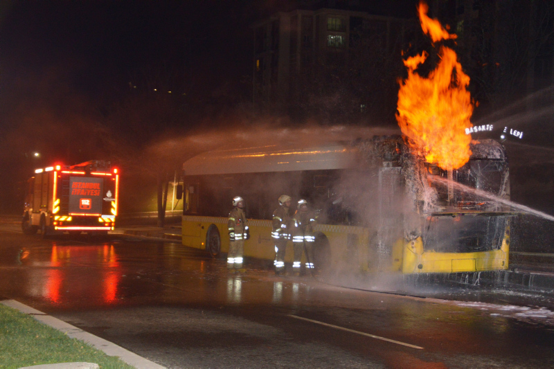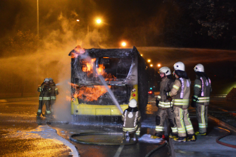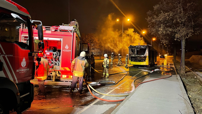 Son dakika haberine göre: Başakşehir'de sürücüsünün yakıt almaya gittiği seyir halindeki İETT otobüsü bilinmeyen bir nedenle alev alarak yandı. Yangın sonrasında otobüste büyük çaplı hasar meydana geldi.