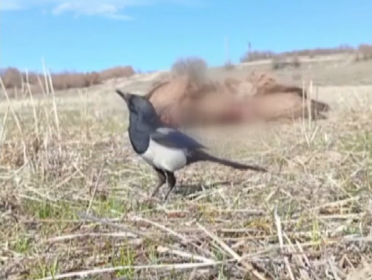 Fotokapana leşi yemek için birbiriyle kavga eden 5 akbabanın yanı sıra leşten pay almaya çalışan karga, serçe ve kartal takıldı.