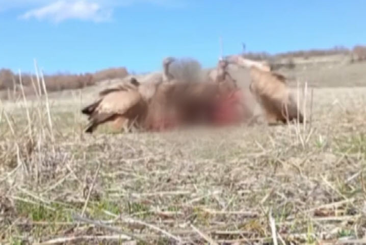 Tunceli'nin Mazgirt ilçesine bağlı Sülüntaş köyünde domuz leşini yiyen akbabaları gören vatandaş, olayı kayıt altına almak için kısa süreliğine fotokapan kurarak bölgeden uzaklaştı.