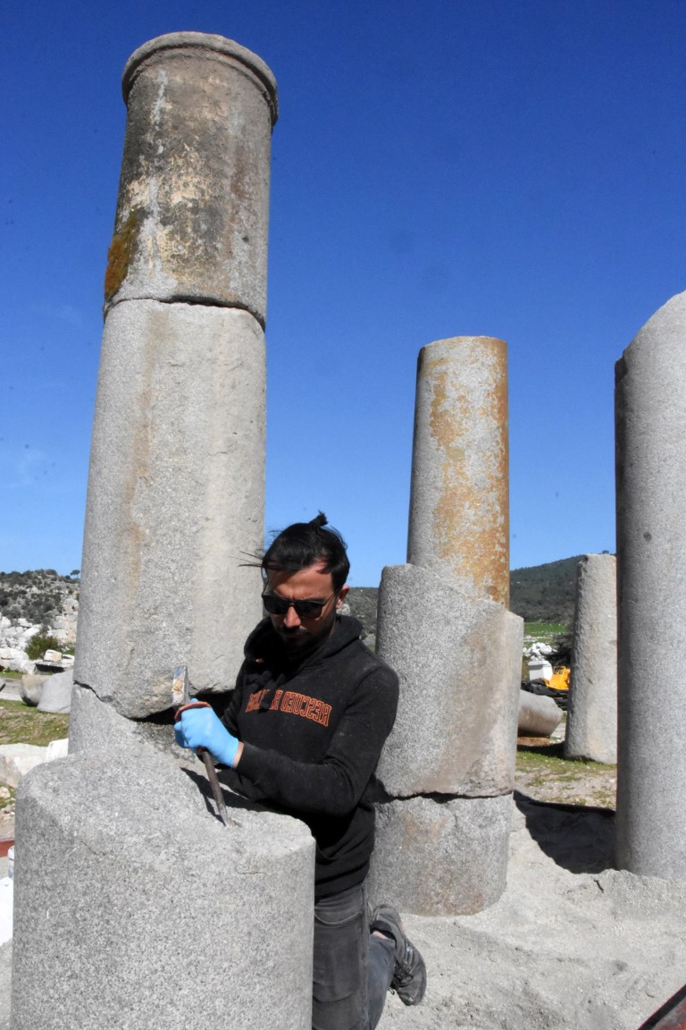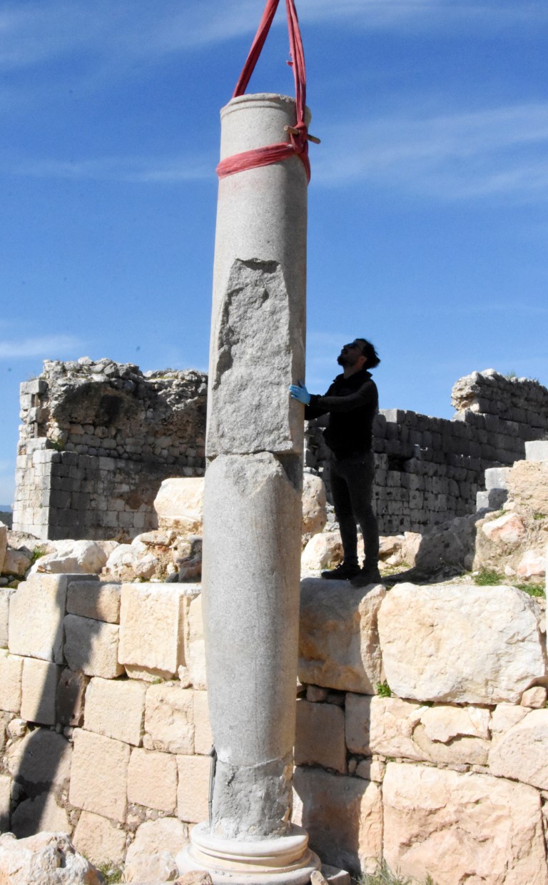 Antalya'nın Kaş ilçesindeki Patara Antik Kenti'nde yürütülen kazılarda ortaya çıkarılan dev sütunlar, restorasyon ve konservasyon çalışmalarının tamamlanmasının ardından yerlerine dikilmeye başlandı. Kazı Başkanı Prof. Dr. Havva İşkan Işık, "Toplamda 57 parçamız var kullanılabilecek nitelikte olan. Bunların 37'sini bir araya getirmeyi başardık" dedi.