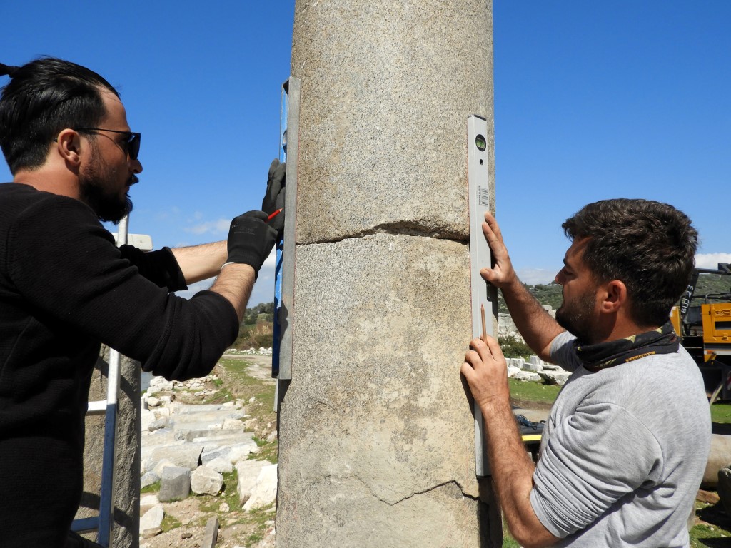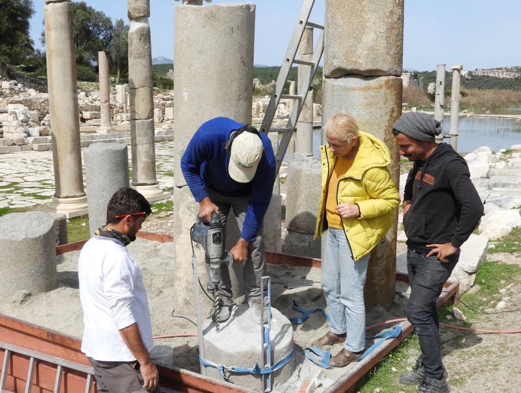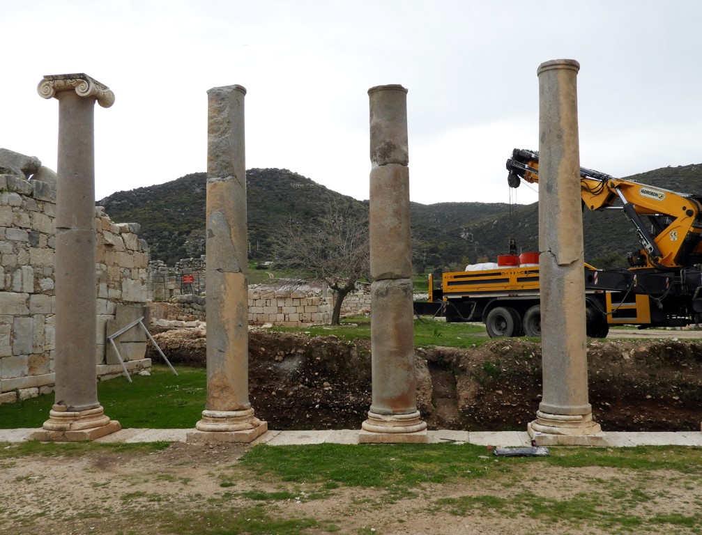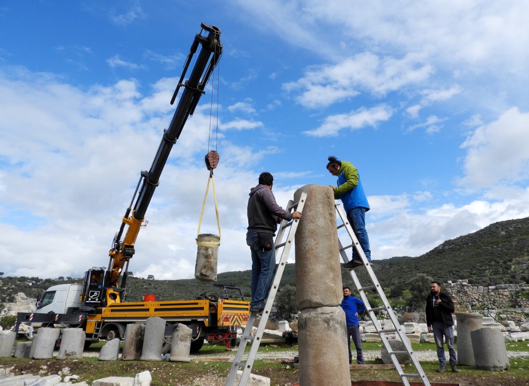 Bu çalışmalar kapsamında Patara Antik Kenti'nde önceki yıllarda Patara Kazıları Başkanı ve Akdeniz Üniversitesi Edebiyat Fakültesi Arkeoloji Bölümü Öğretim Üyesi Prof. Dr. Havva İşkan Işık başkanlığında yürütülen kazılarda ortaya çıkarılan dev sütunlar yerlerine dikiliyor.