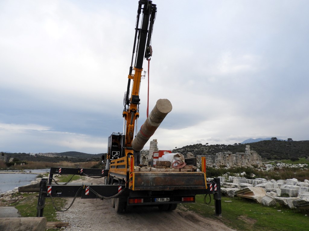 Patara Antik Kenti'nde önceki yıllarda Liman Caddesi, Batı Agora ve Neron Hamamı bölümlerinde yapılan kazılarda ortaya çıkarılan sütunların restorasyon ve konservasyon çalışmalarına Antalya Valisi Münir Karaoğlu'nun katkılarıyla başlandı.