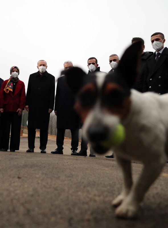 Cumhurbaşkanı Erdoğan incelemeleri sırasında yetkililerden bilgi aldı. Erdoğan gezisi sırasında barınağın maskotu olan Maylo adlı Jack Russell Terrier cinsi köpek ile top atarak oynadı.