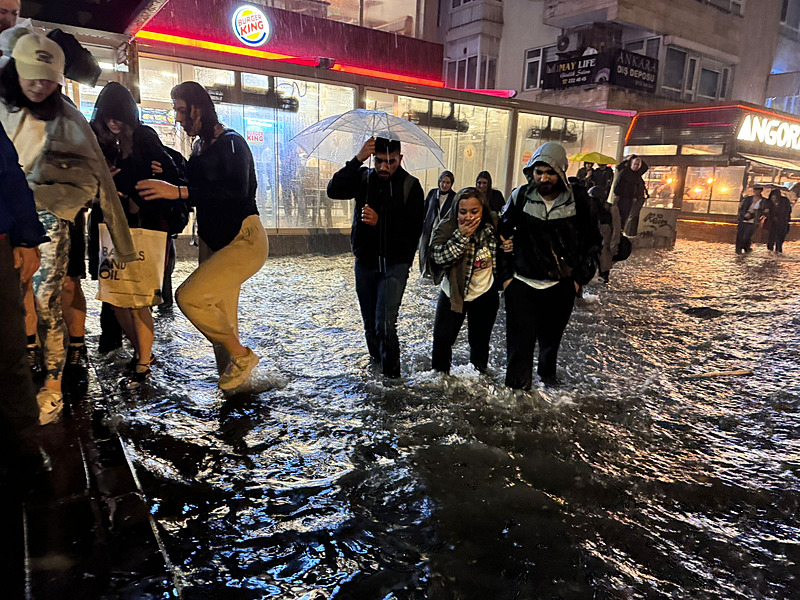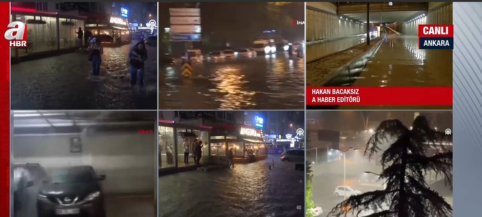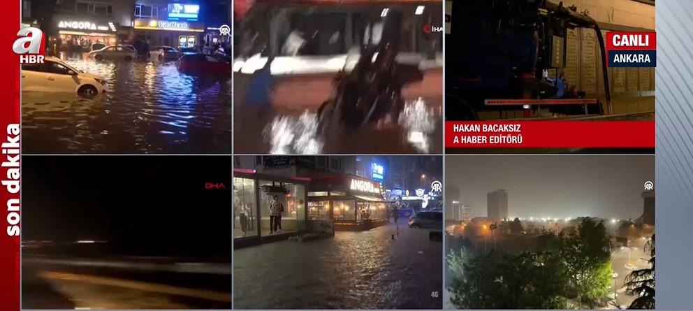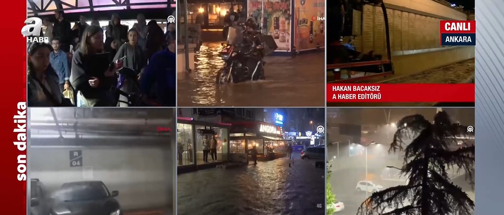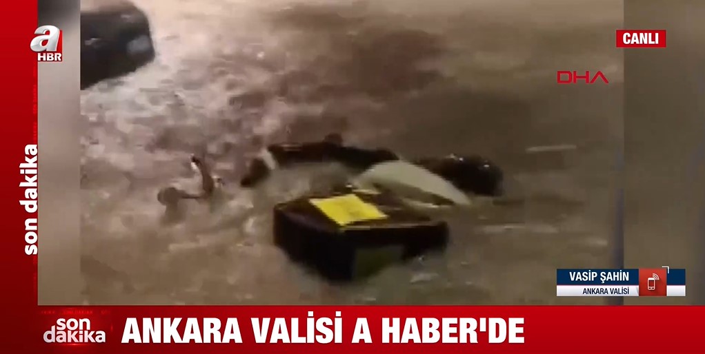 Ankara Valiliğinin yaptığı uyarının ardından Başkent'te etkili olan sağanak nedeniyle cadde ve sokaklar göle döndü.Sağanak yağış nedeniyle trafikte ilerlemeye çalışan araçlar zor anlar yaşadı. Yağışa hazırlıksız yakalanan vatandaşlar, kapalı alanlarda yağmurun durmasını bekledi. Ankara Valisi Vasip Şahin, A Haber canlı yayınına bağlanarak son duruma ilişkin bilgi verdi. Vasip Şahin, yaptığı açıklamada "Ankara'mıza geçmiş olsun. Akşam saatlerinde Ankara'da yoğun bir yağış aldık. Bütün ekiplerimiz, sahadalar. Mevcut sorunlara müdahale ediliyor. En büyük temennimiz can kaybının olmamış olması. Yağışın en fazla olduğu yer Yenimahalle. Yenimahalle'de su baskını şeklinde ihbar geliyor. " dedi. Öte yandan A Haber Editörü Hakan Bacaksız, detayları A Haber canlı yayınında anlattı. Bacaksız, yaptığı açıklamada, "Son dönemlerin belki de en şiddetli yağışıyla karşı karşıya başkent Ankara. Birçok cadde ve sokak adeta göle döndü." ifadelerini kullandı. İşte kare kare o anlar...