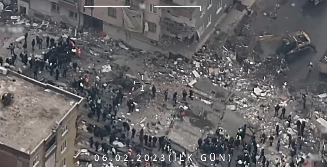 Bayraktar AKINCI TİHA'lar depremin ilk günü zorlu hava şartlarında tespit, arama kurtarma desteği ve koordinasyon faaliyetleri için aralıksız görev uçuşları gerçekleştirdi.