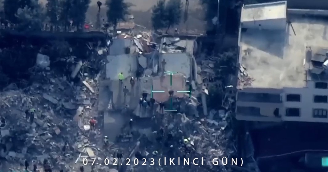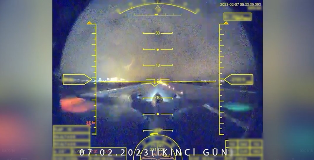 Depremin ilk günü olan 6 Şubat 2023 Pazartesi günü yoğun hava muhalefeti, fırtına, kar yağışı ve bütün bölgeyi kapatan yoğun bulutluluk nedeniyle uçaklar ve helikopterler havalanamazken, sadece Bayraktar AKINCI TİHA'lar insansız olmasının verdiği avantajla risk alınarak görev uçuşu gerçekleştirdi.