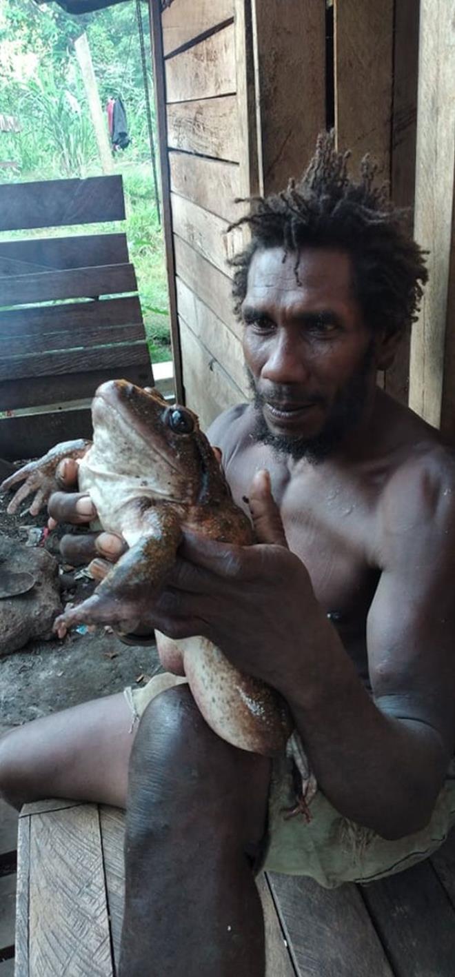Köyde çiftliği olan 35 yaşındaki Hugo, domuz avına çıktığı sırada çalılığın arasında dev kurbağayı buldu.