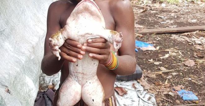 Okyanusya'da 6 büyük ve 900'den fazla küçük adadan oluşan Solomon Adaları'nda yaşayan Jimmy Hugo isimli köylü, insan bebeği büyüklüğünde bir kurbağa buldu. Hugo, kurbağanın şu ana kadar gördüğü en büyük kurbağa olduğunu söyledi.