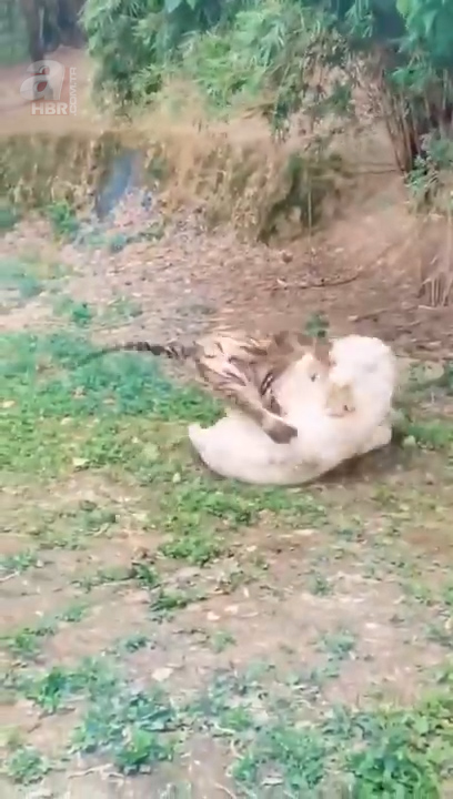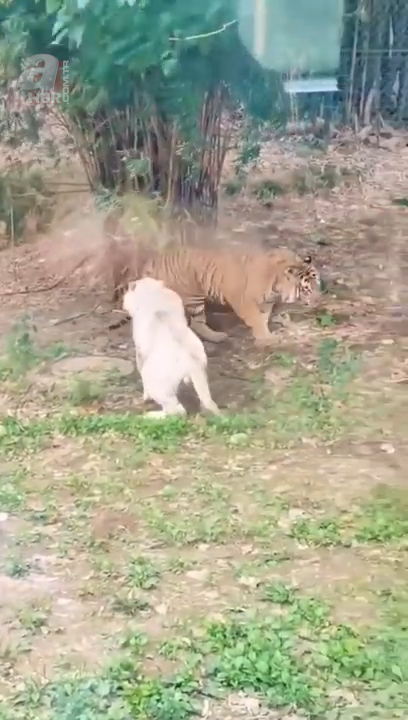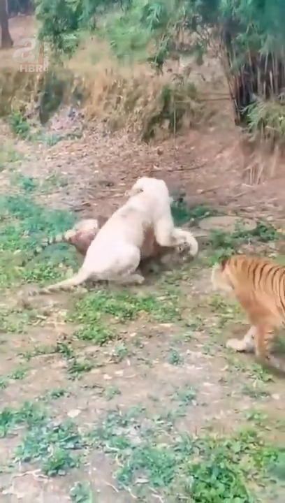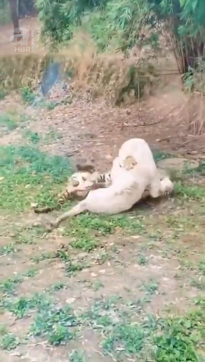 Beyaz aslan ve kaplanın karşılaşması nefesleri kesti! (Aslan Kaplan kavgası)