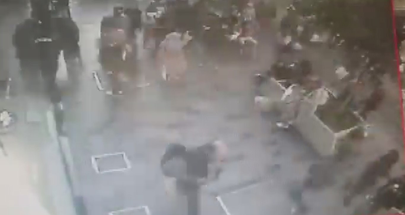 Patlamanın sesi çevreden duyulurken, caddede yürüyen vatandaşların kaçıştığı görüldü.