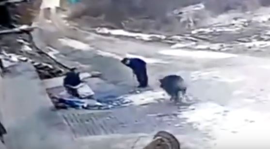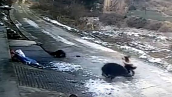 Yaralanan domuz bir avcının üzerine koşmaya başladı.