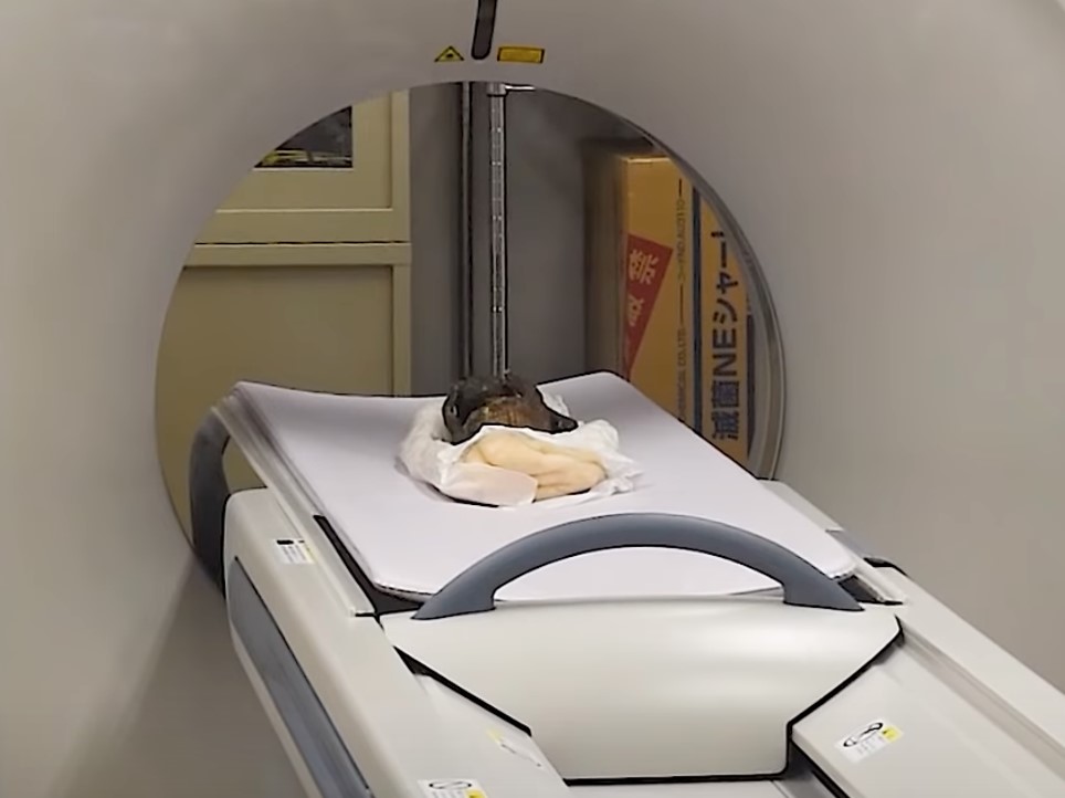 Gizemli yaratık Kurashiki Bilim ve Sanat Üniversitesi'nden araştırmacılar, mumyanın sırlarını ortaya çıkarmak amacıyla CT taraması için mumyayı aldılar.