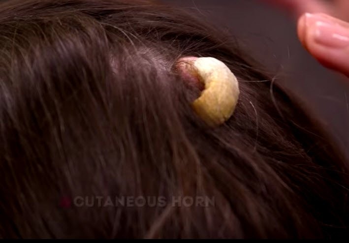 43 yaşındaki, bir çocuk annesi Lisa'nın cildinde bir şişlik meydana geldi. Yaklaşık bir yıldır kafasının arka kısmında beliren bu şişliği gergedan boynuzuna benzetiyordu.