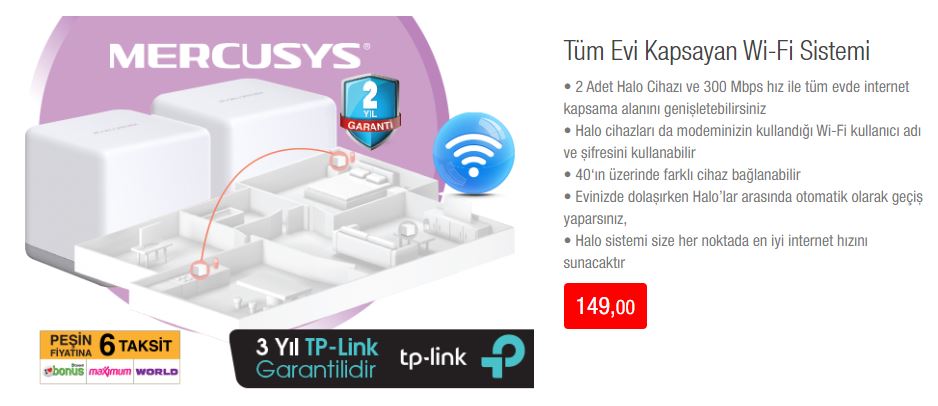 • 2 Adet Halo Cihazı ve 300 Mbps hız ile tüm evde internet kapsama alanını genişletebilirsiniz