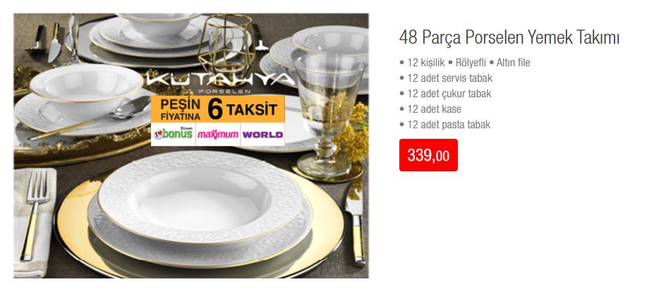 48 Parça Porselen Yemek Takımı