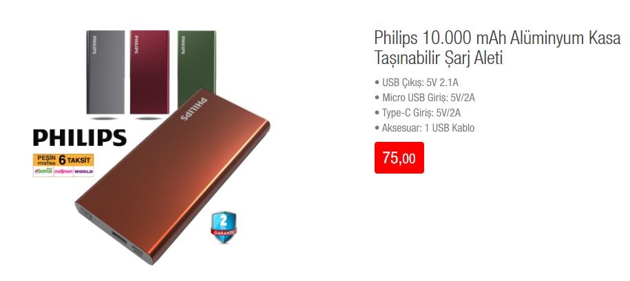 Philips 10.000 mAh Alüminyum Kasa Taşınabilir Şarj Aleti