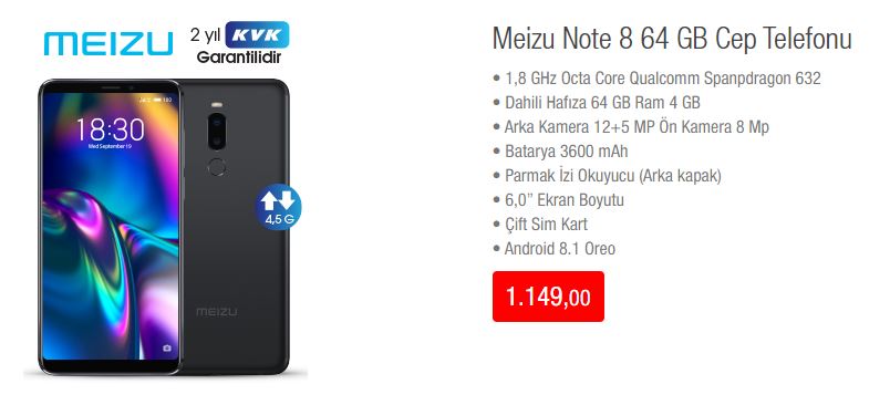 Meizu Note 8 64 GB Cep Telefonu