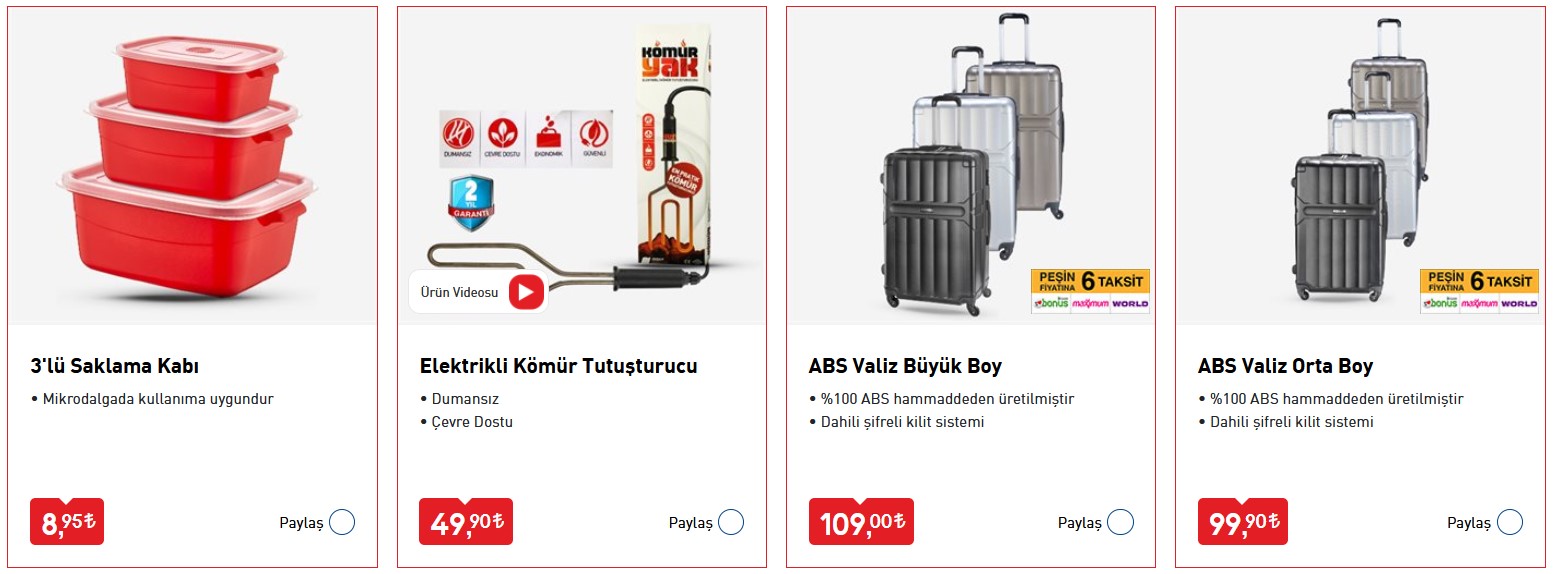 BİM'de cuma indirimleri belli oldu. Bu hafta hangi ürünlerin satışa çıkacağını merak eden vatandaşlar 17 Temmuz kataloğunu araştırıyor. Elektrik süpürgesi, davul fırın, 4 kapak tek çekmeceli çok amaçlı dopal, 4 parça çelik cezve seti, cam ışıklı kettle, otomatik kahve&baharat öğütücü, blender set, çay makinesi, bisiklet, çelik termos, 30'lu su balonu, çim saçlı oyuncak gibi çeşit çeşit ürünler bu katalogda yer alıyor.