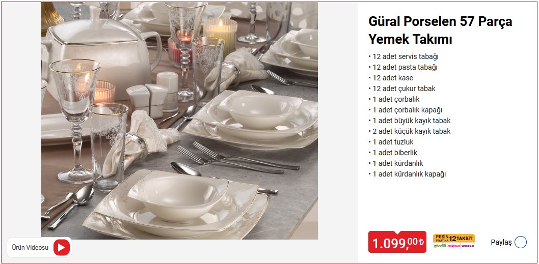 Güral Porselen 57 Parça Yemek Takımı