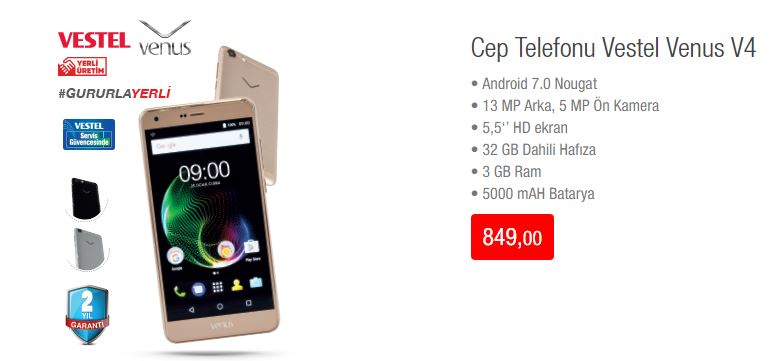 VESTEL VENÜS V4 AKILLI TELEFON ÖZELLİKLERİ