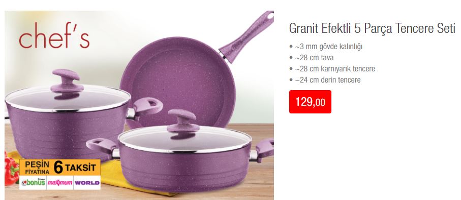 CHEF'S MARKA GRANİT EFEKTLİ 5 PARÇA TENCERE SETİ