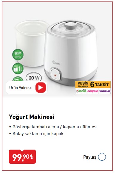BİM cuma indirimleri sürprizlerle dolu. BİM marketlerin 9 Ekim kataloğunda ev hanımlarını yakından ilgilendiren ürünler yer alıyor. Katalogda en çok dikkat çeken ürünler arasında yoğurt makinesi bulunuyor. Öte yandan kavanoz çeşitleri, saklama kabı, karnıyarık tenceresi, şofben, buharlı ütü, küvet ve file seti gibi çeşit çeşit ürünler raflarda yerini aldı. Peki, bu hafta BİM'de hangi ürünler olacak? İşte BİM 9 Ekim 2020 aktüel ürünler kataloğu ve fiyat listesi...
