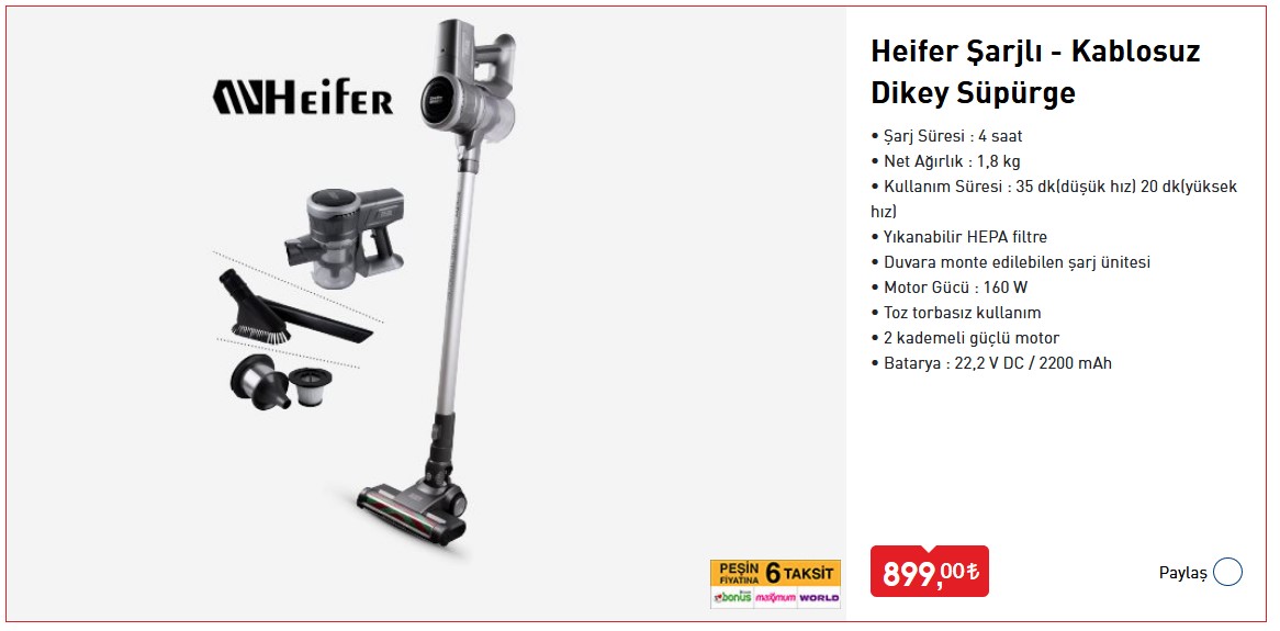 Heifer Şarjlı - Kablosuz Dikey Süpürge