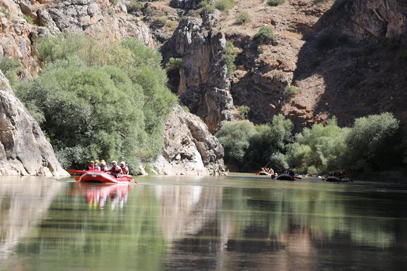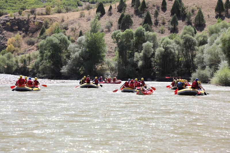 Kentte bulunan rafting kulüplerinden oluşan 6 bottaki sporcular da Yıldırım ve beraberindekilere eşlik etti.
