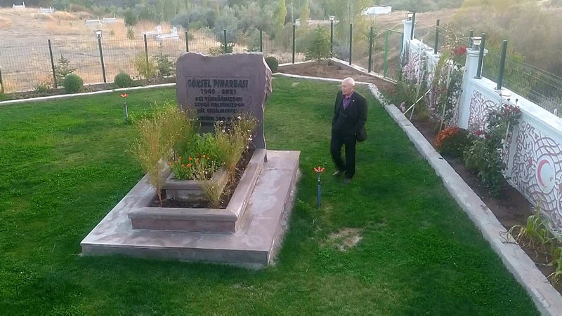 Erol Pınarbaşı, ölen eşiyle 65 sene bir yastığa baş koyduklarını ifade ederek, "2021 yılının 6. ayından itibaren şimdiye kadar yaptığım masraf 20 bin Euro'nun üzerinde. Kırşehir'e giderek mezarlara baktım, bin 200 Euro'ya bunu yaptırdım. Mezarda yatan hanımefendinin sevdalısıyım. Mekanı cennet olsun. Beni yalnız bıraktı, çok üzgünüm. 65 sene bir yastığa baş koyduk biz. Birbirimizi hiç kırmadık. Hiç ayrı gayrımız olmadı." dedi.