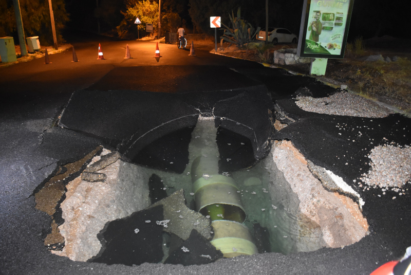Muğla'nın Bodrum ilçesinde ana su hattı bomba gibi patladı, işyerleri ve bahçeler sular altında kaldı.