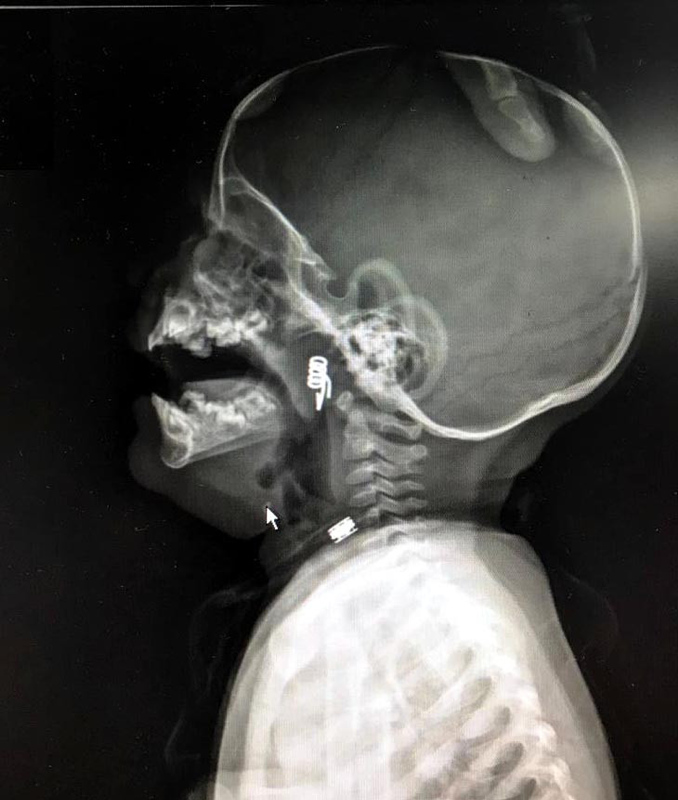 Nevşehir Devlet Hastanesi Acil Polikliniği'ne getirilen bebeği, Acil Nöbetçi doktoru Mustafa Alpaslan muayene ederek gerekli tetkikleri yaptı. Çekilen röntgen filmlerinde mandal yayının lokalizasyonu ve durumu belirlendi. Daha sonra, KBB Uzmanı Op. Dr. Ahmet Cevatzade tarafından yapılan başarılı ameliyat sonucunda bebeğin genzine saplanan mandal yayı çıkartıldı.