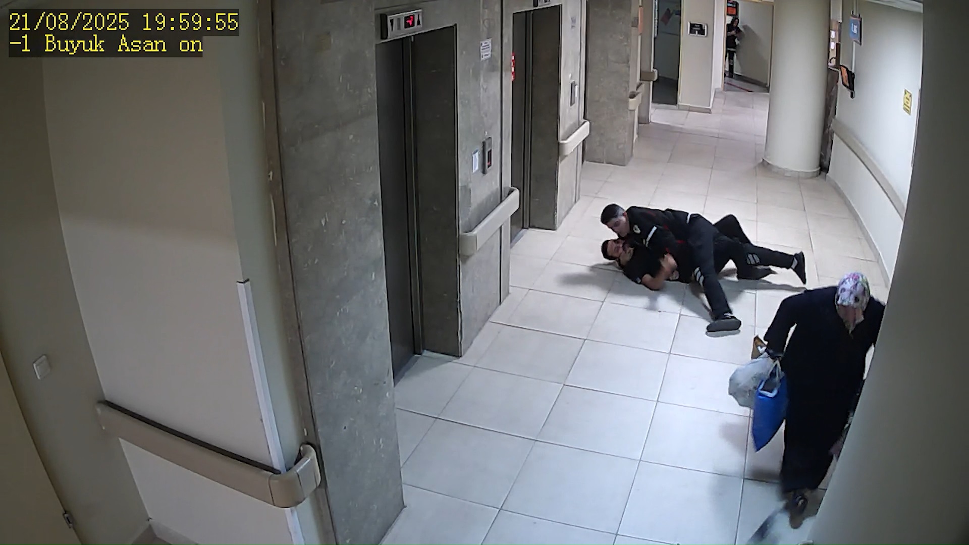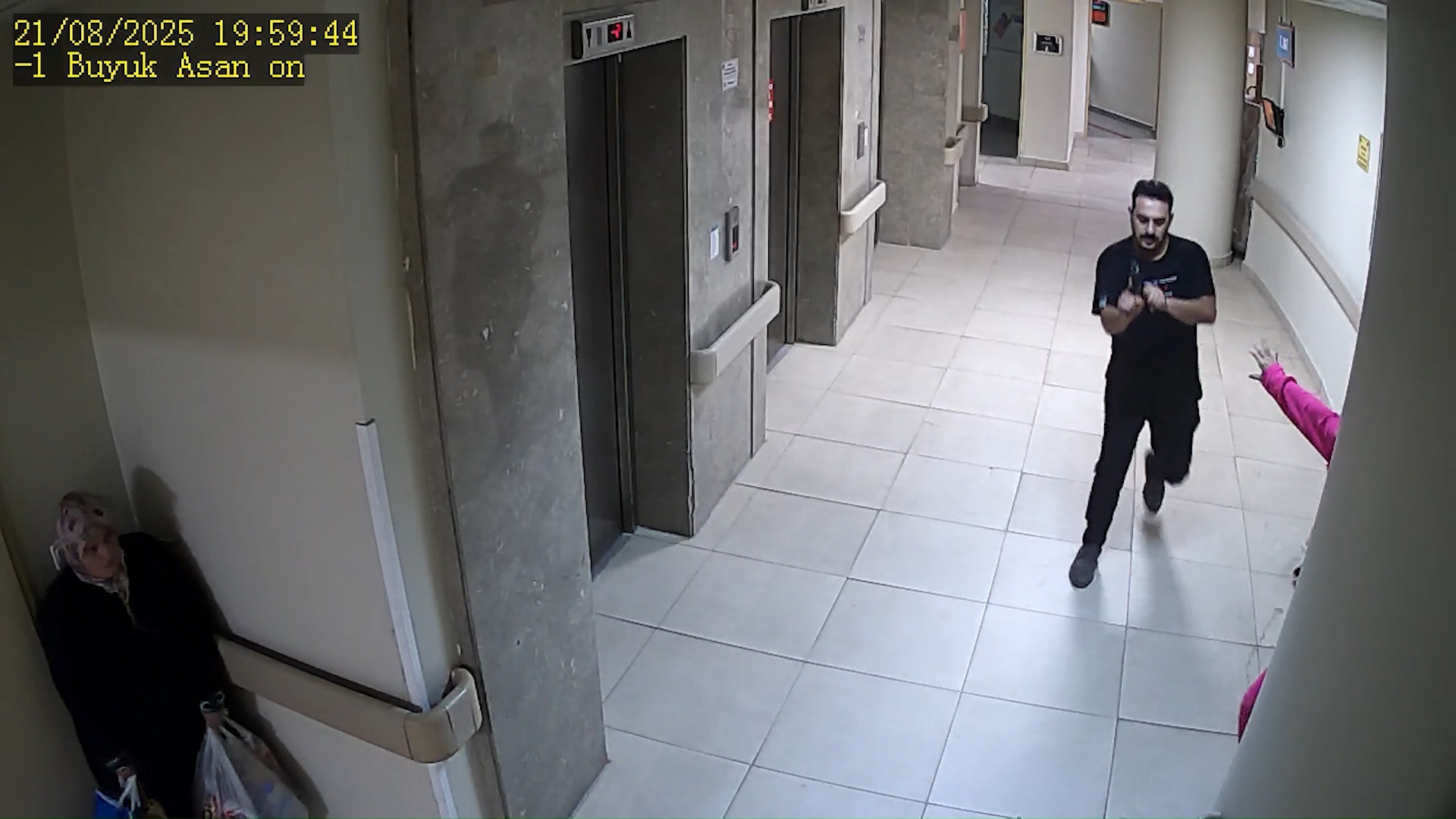 Görüntülerde ayrıca koridorda koşan çifti gören bazı güvenlik görevlilerinin panikle uzaklaştığı, daha sonra başka bir güvenlik görevlisinin saldırganı etkisiz hale getirdiği görüldü.