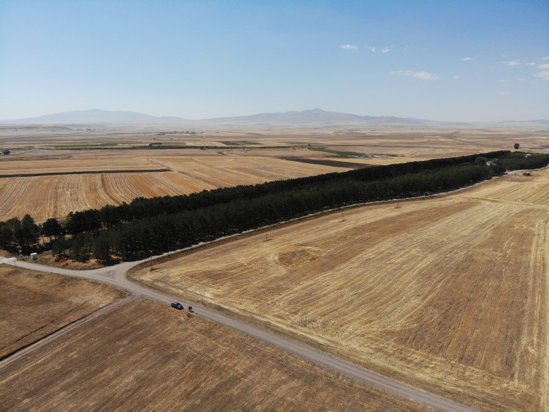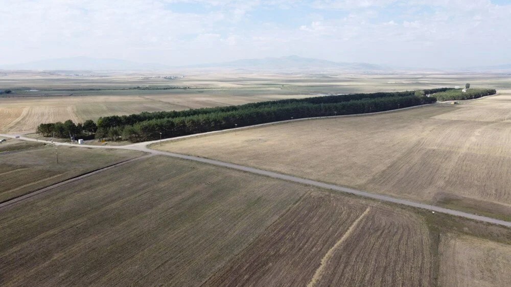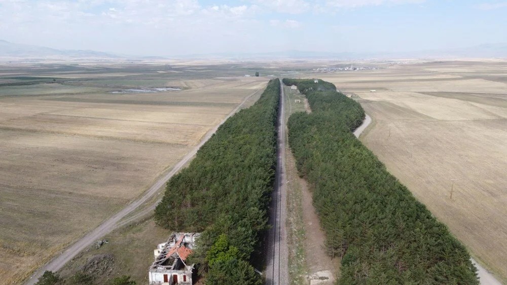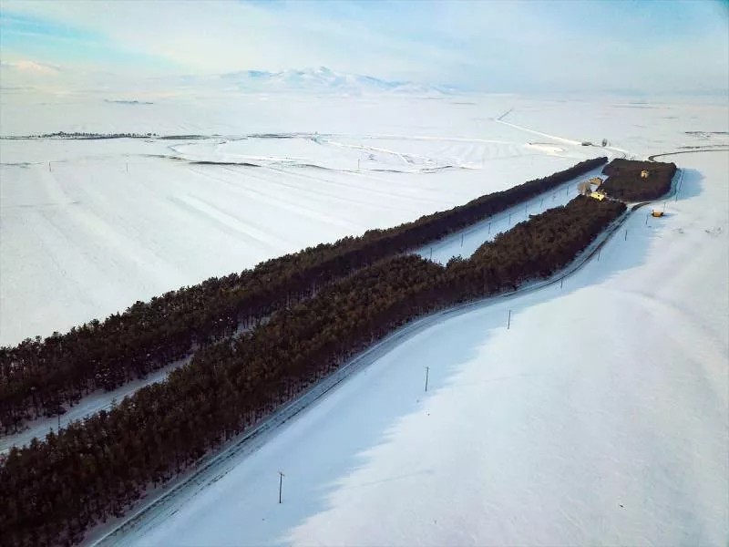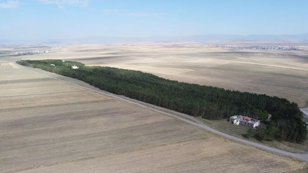 Kars'ın Selim ilçesinde 54 yıl önce Türkiye Cumhuriyeti Devlet Demiryolları'nda çalışan işçiler tarafından ağaçlandırılan alan göz kamaştırıyor. Bozkırın ortasındaki 'vaha' havadan görüntülendi.