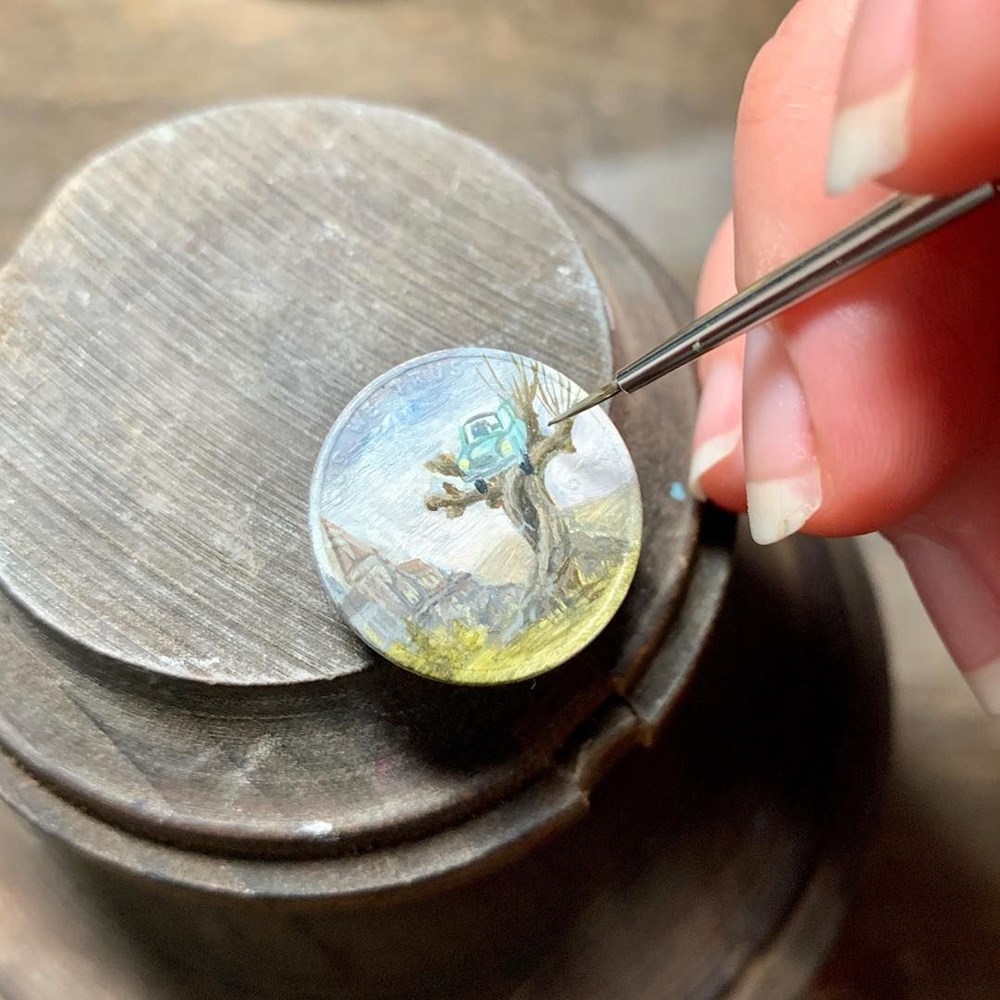 Marie'nin her bir bozuk paranın üstüne resim yapması 10 saatten daha uzun sürüyor. Kat kat boyanın kurumasını beklemekse günler alıyor.
