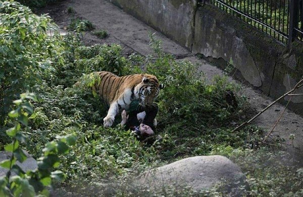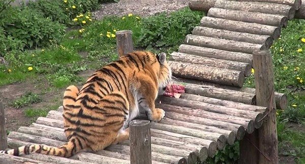 DEHŞETE DÜŞÜREN GÖRÜNTÜ! KAPLANA YEM OLUYORDU...