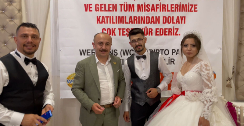 Damadın ağabeyi Fevzi Altunkürek ise, "Dijital çağın en mutlu anını yaşıyoruz. Dijital para artık yaygınlaşacak, artık düğünlerde bunu göreceğiz" şeklinde konuştu.
