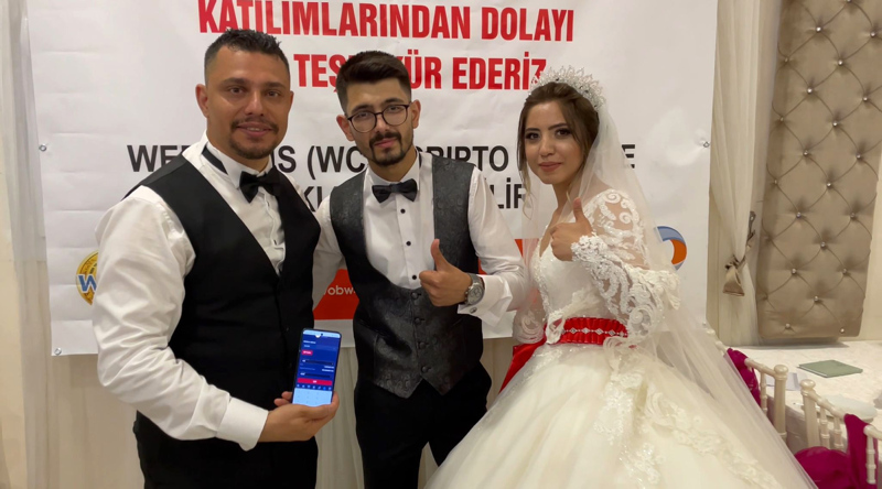 Damat tarafının aile yakını olarak düğüne katılan kripto para yatırımcısı Cıbır, "Belki de geleceğin olayını yapıyoruz şu anda, kripto paralar ile gelinle damada takılar takıyoruz. Artık her şey dijitalleşiyor. Düğünlerde bile takılar bu şekilde yapılabiliyor" dedi. 3 bin dolar değerinde kripto para takılan gelin ve damat ise kameralara bol bol poz verdiler.